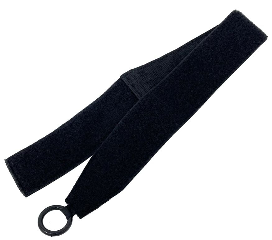 Kiinnitysnauhan päässä muovirengas, joka helpottaa avausta ja kiinnitystä
