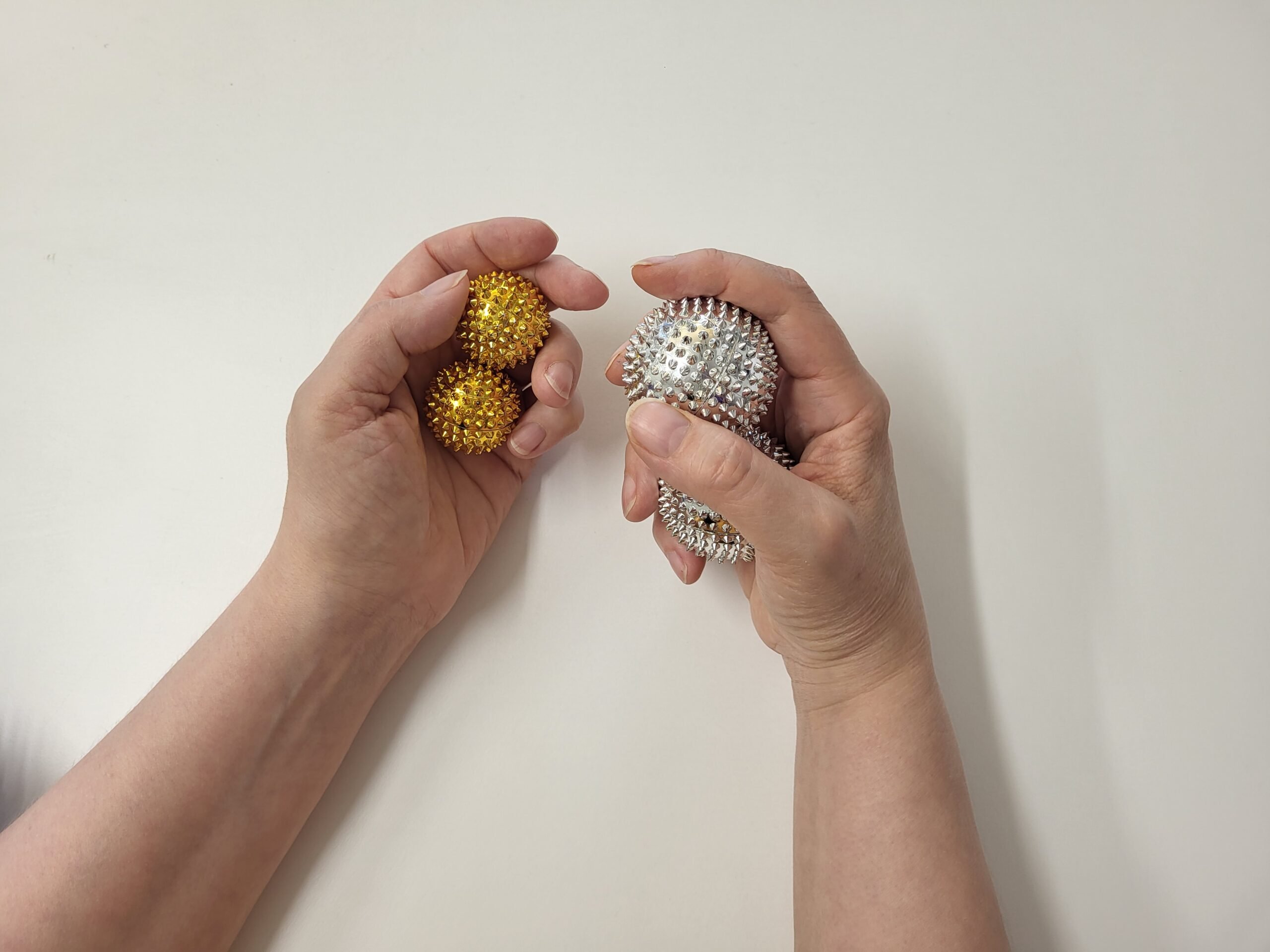 Magneettiset hierontapallot, joissa on hieman terävät nystyrät. Palloilla voi harjoitella sormien liikkuvuutta ja koordinaatiota. Nystyrät edistävät verenkiertoa ja lievittävät lihaskipua ja jäykkyyttä sorminivelissä. Materiaali: kovamuovi ja metalli. Palloja saatavana kolmea eri kokoa.