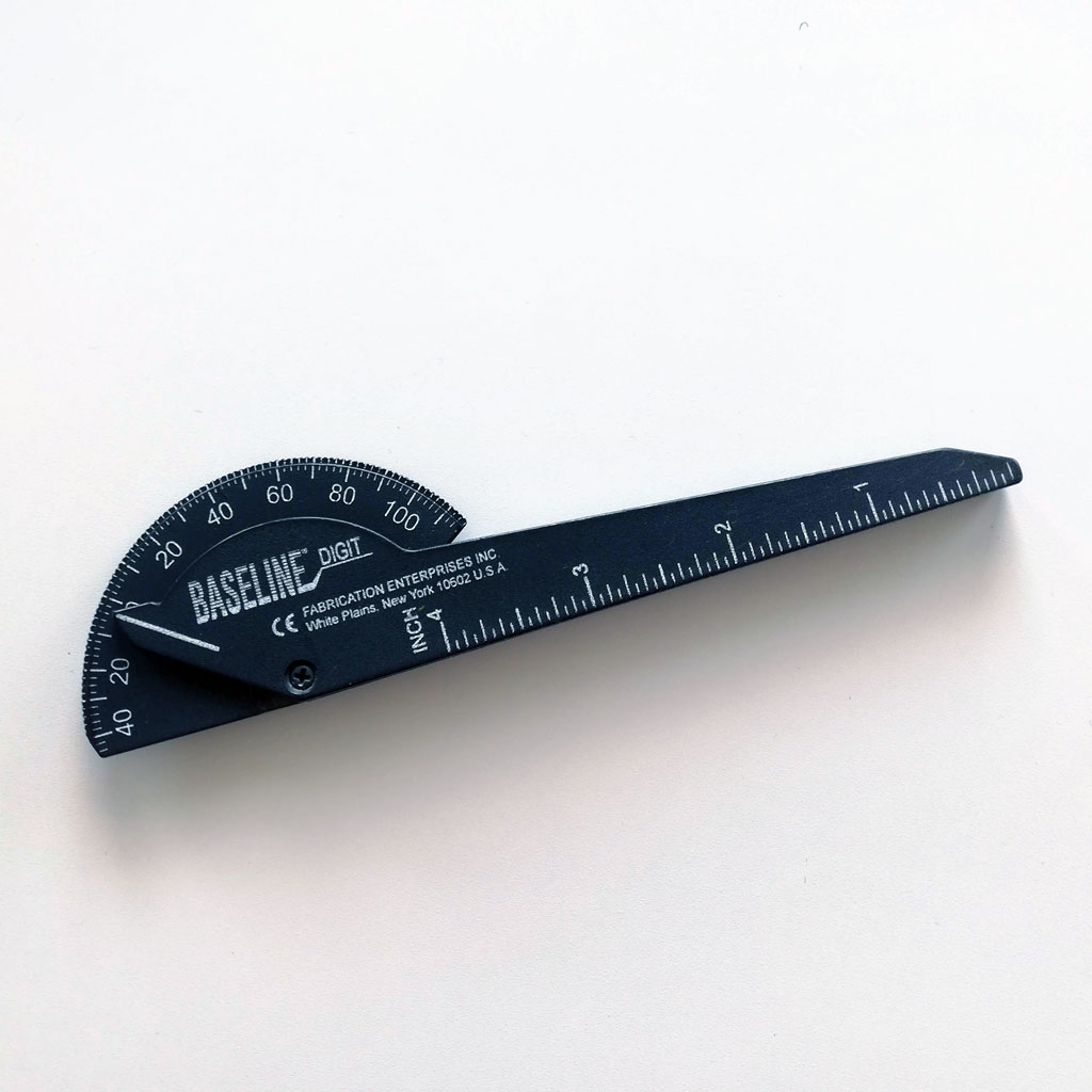 Muovinen goniometri 180°:n mitta-asteikolla sorminivelten liikeradan mittaukseen