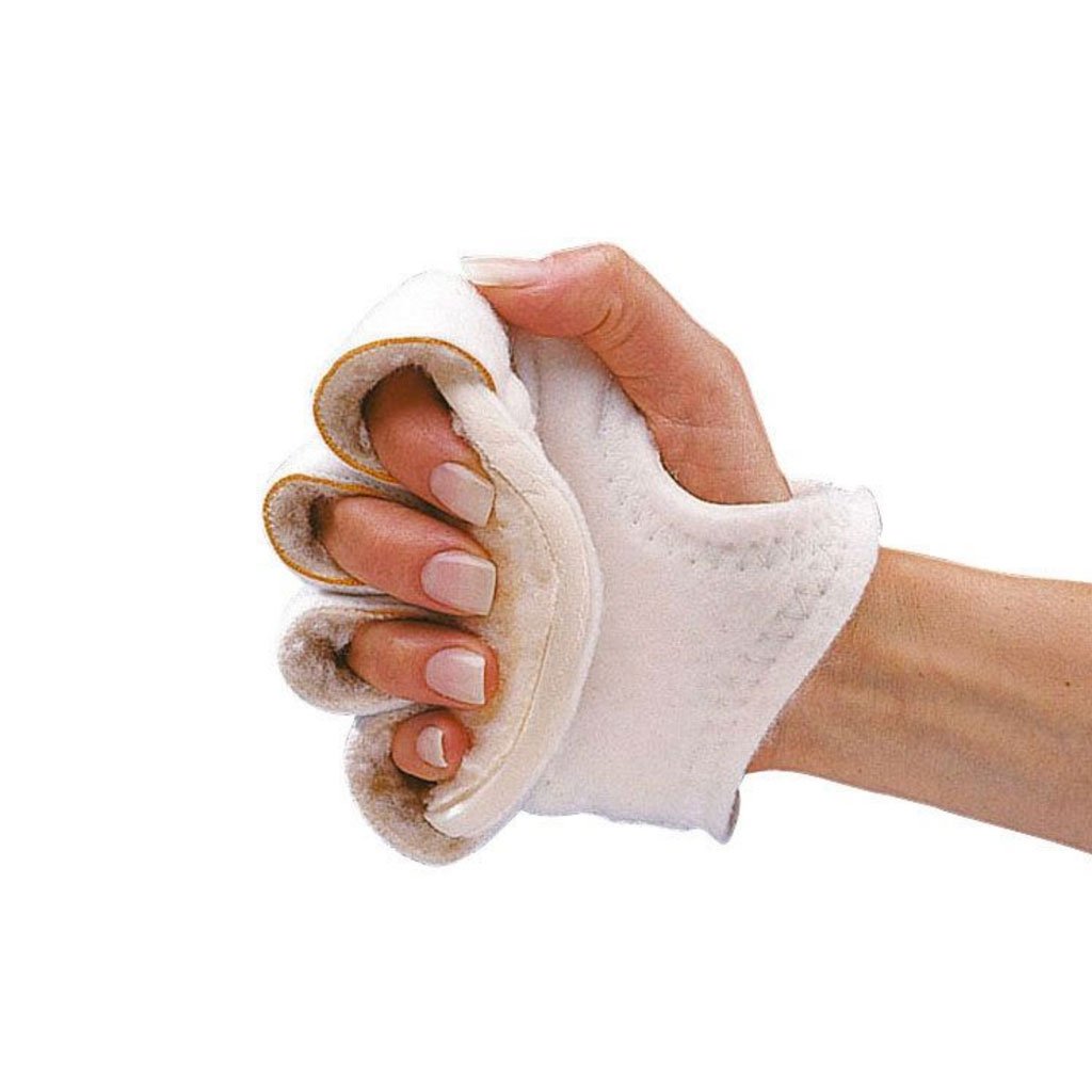 Pehmeä, teddy-karvalla päällystetty kämmensuoja. Pitää sormet erillään ja suojaa kämmentä esimerkiksi spastisessa kädessä.