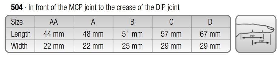 Oikea koko valitaan mittaamalla kämmenpuolelta sormen tyven poimusta ylimmän sorminivelen poimuun.
