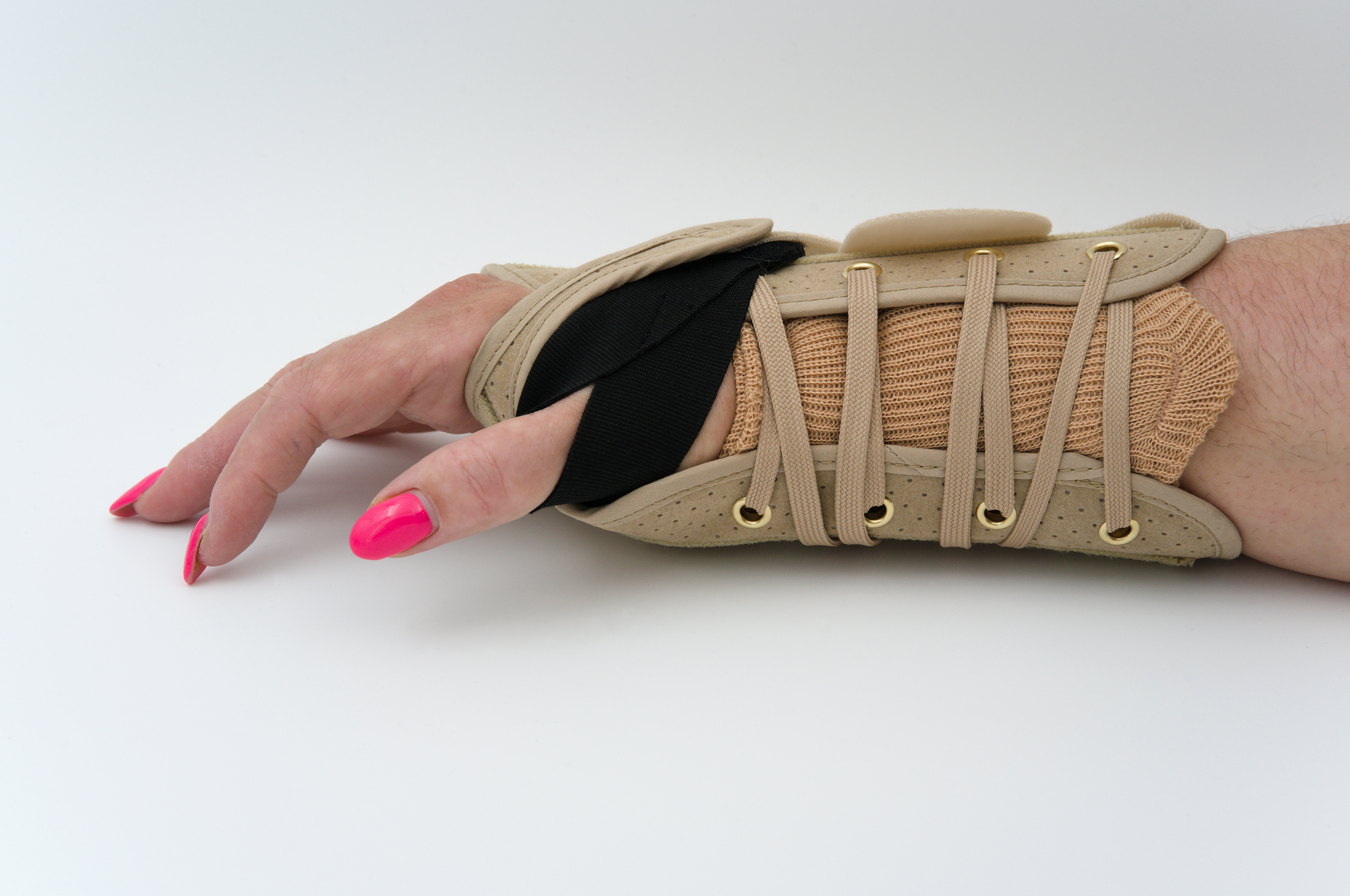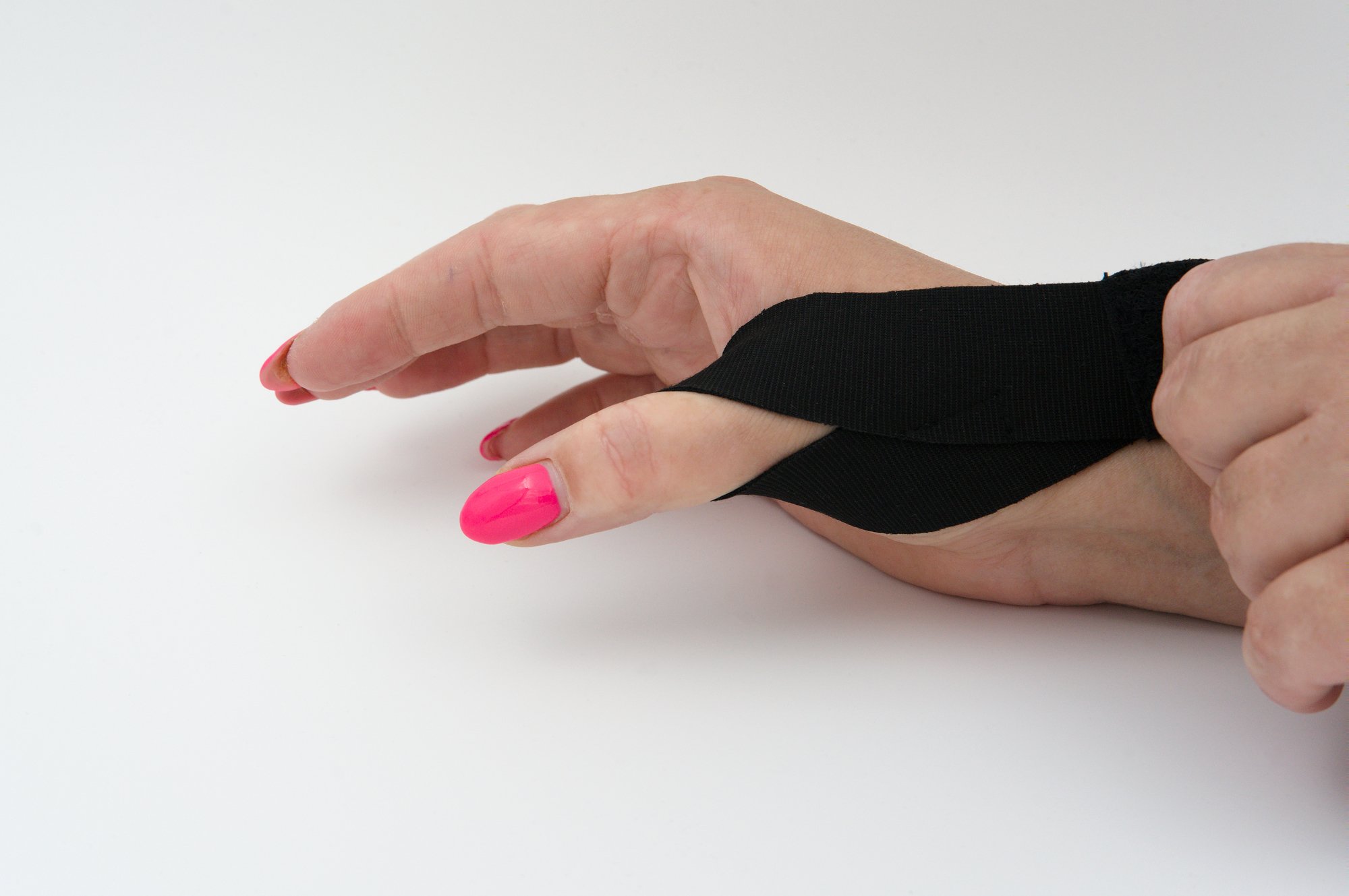 Tarttuu tarranauhalla pujotettavien rannetukien kämmenselkään. Molempikätinen.